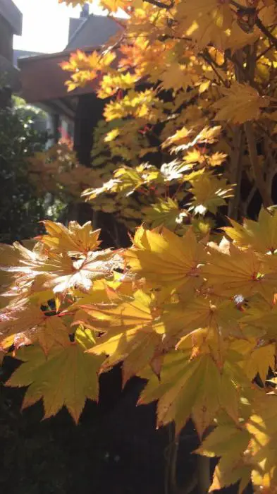 Die Blätter sind im Frühling sanft grün, im Sommer goldgelb, im Herbst orange.