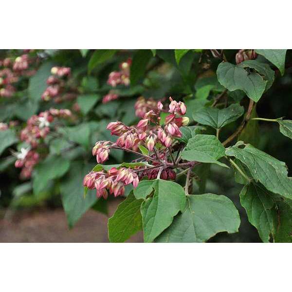 Clerodendrum trichotomum ist ein mehrstämmiger Strauch/Baum mit schnellem Wachstum und schönen, fluffigen Blättern. Wenn die Blätter blau werden, entsteht ein Erdnussgeruch.