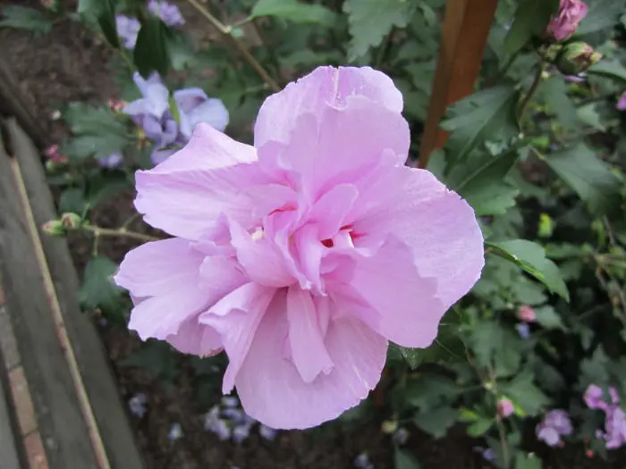 Blüht mit doppelten, fliederfarbenen (lila-blauen) Blüten. Die Blüte ist in langen, heißen Sommern noch reichlicher.