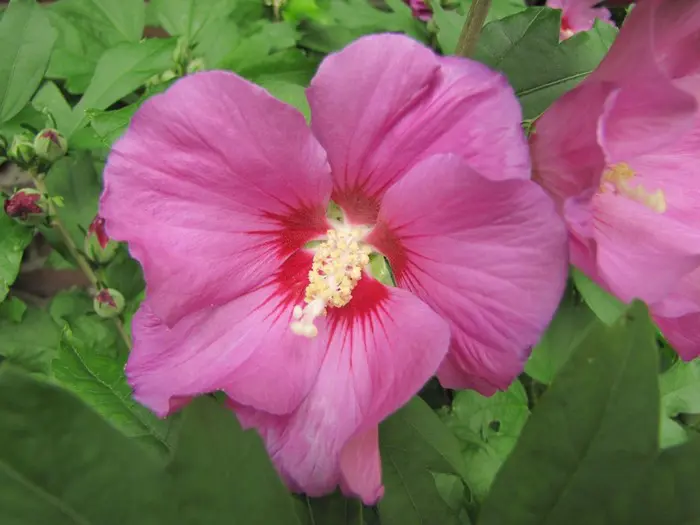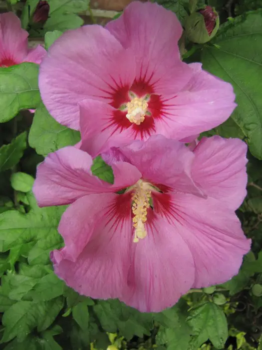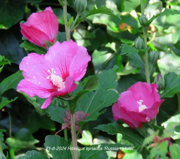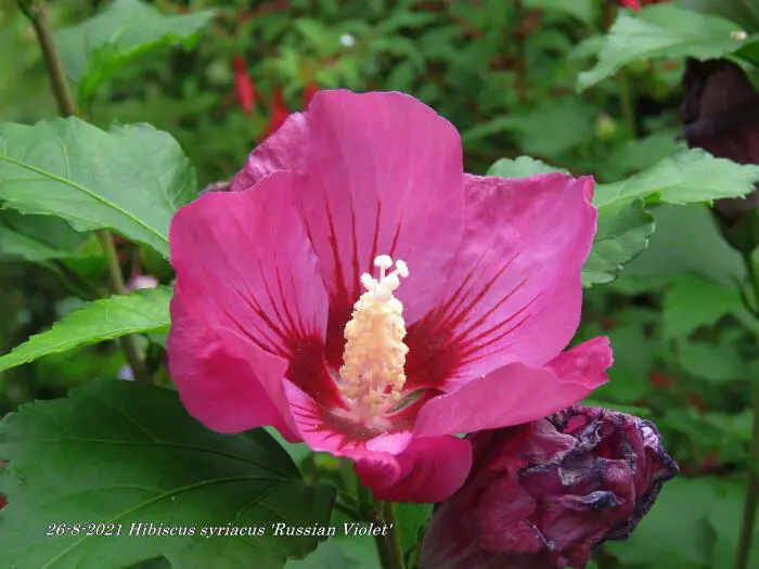 Hibiscus syriacus 'Russian Violet' ist eine nette Verbesserung. Kräftiger, reichhaltiger und blüht im Spätsommer mit ebenfalls größeren Blüten.