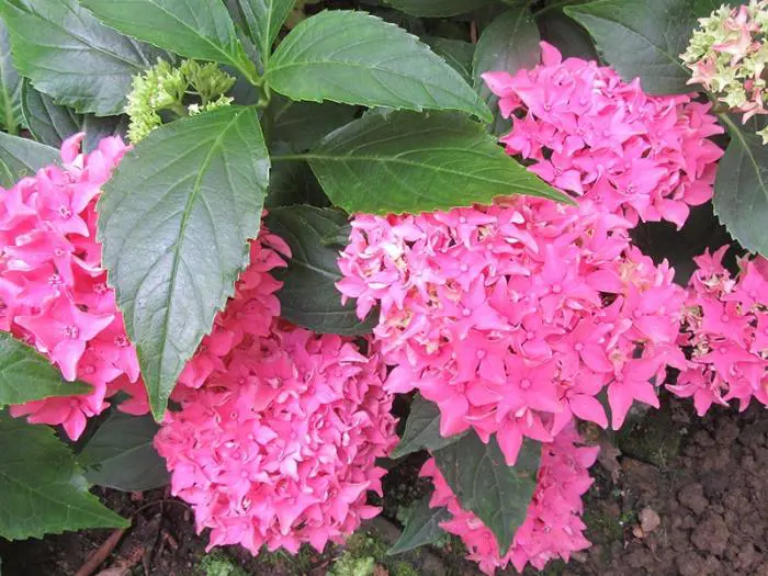 Diese Hortensie wird in saurem Boden nicht blau, behält aber ihre rote Farbe.