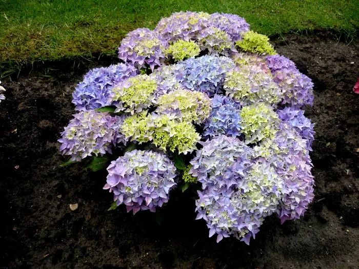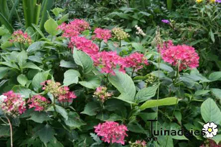 Zwergenarten mit sternförmigen Blüten. Je nach Säure des Bodens wird es blau oder rosa