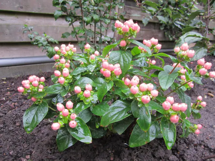 Hypericum 'Miracle Blossom' ist ein kompakter, buschiger Strauch, der so breit wie hoch wächst.
