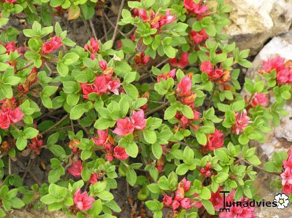 Rhododendron kiusianum blüht weiß, rot oder violett.