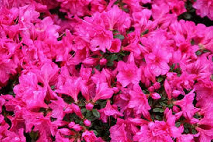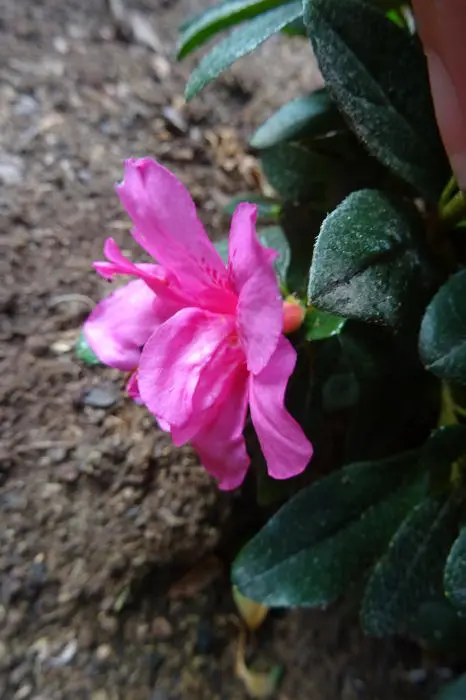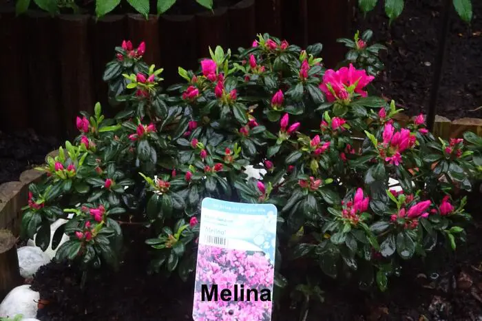 Rhododendron 'Melina' wächst breit und kompakt und blüht mit Büscheln leuchtend purpur-rosa Doppelblüten.