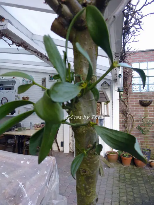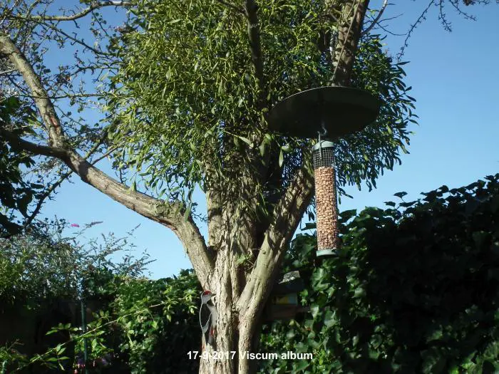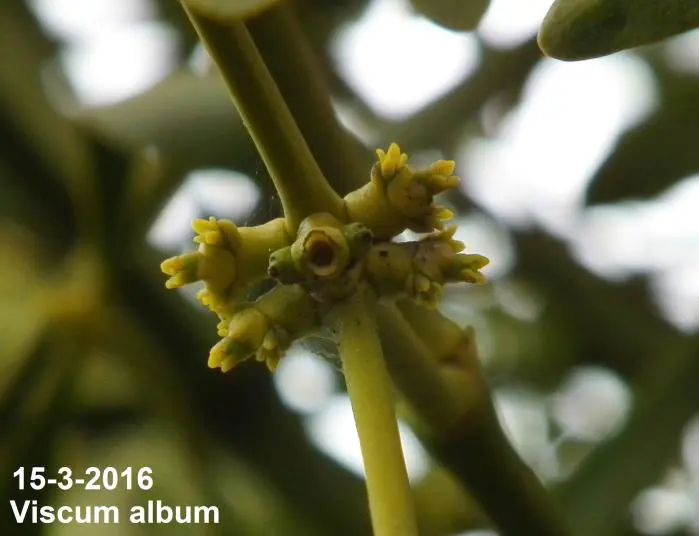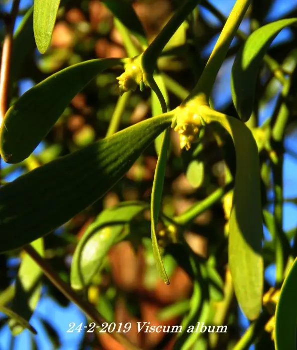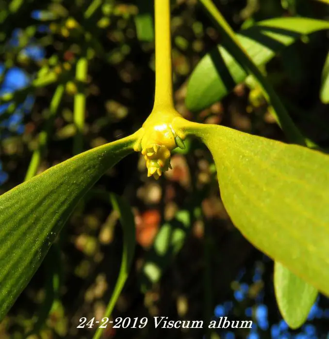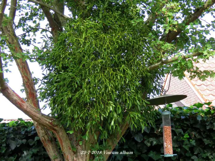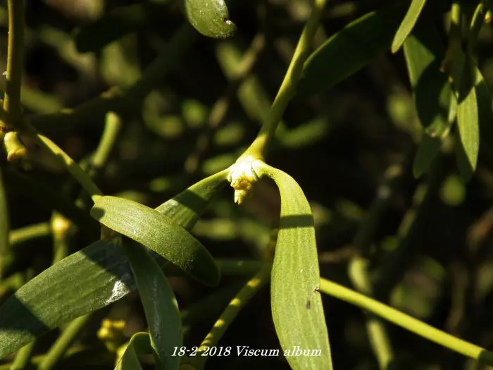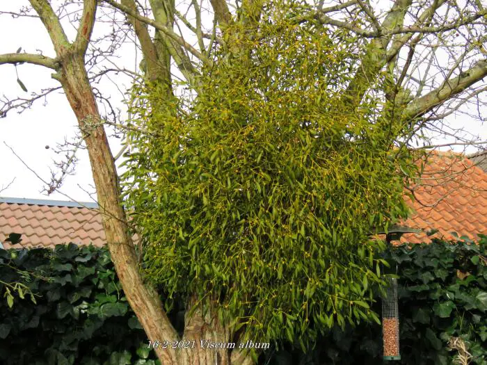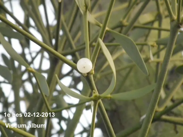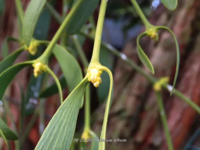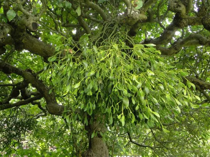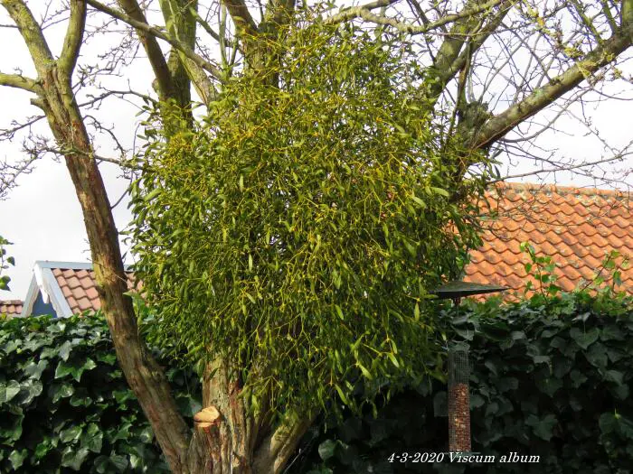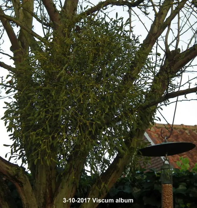 Das Viscum-Album ist besser bekannt als Mistelzweig, die wie dicke Bälle in den Bäumen hängen. Sie werden auch zu Weihnachten häufig in Blumenarrangements oder zum Aufhängen über einer Tür verwendet.