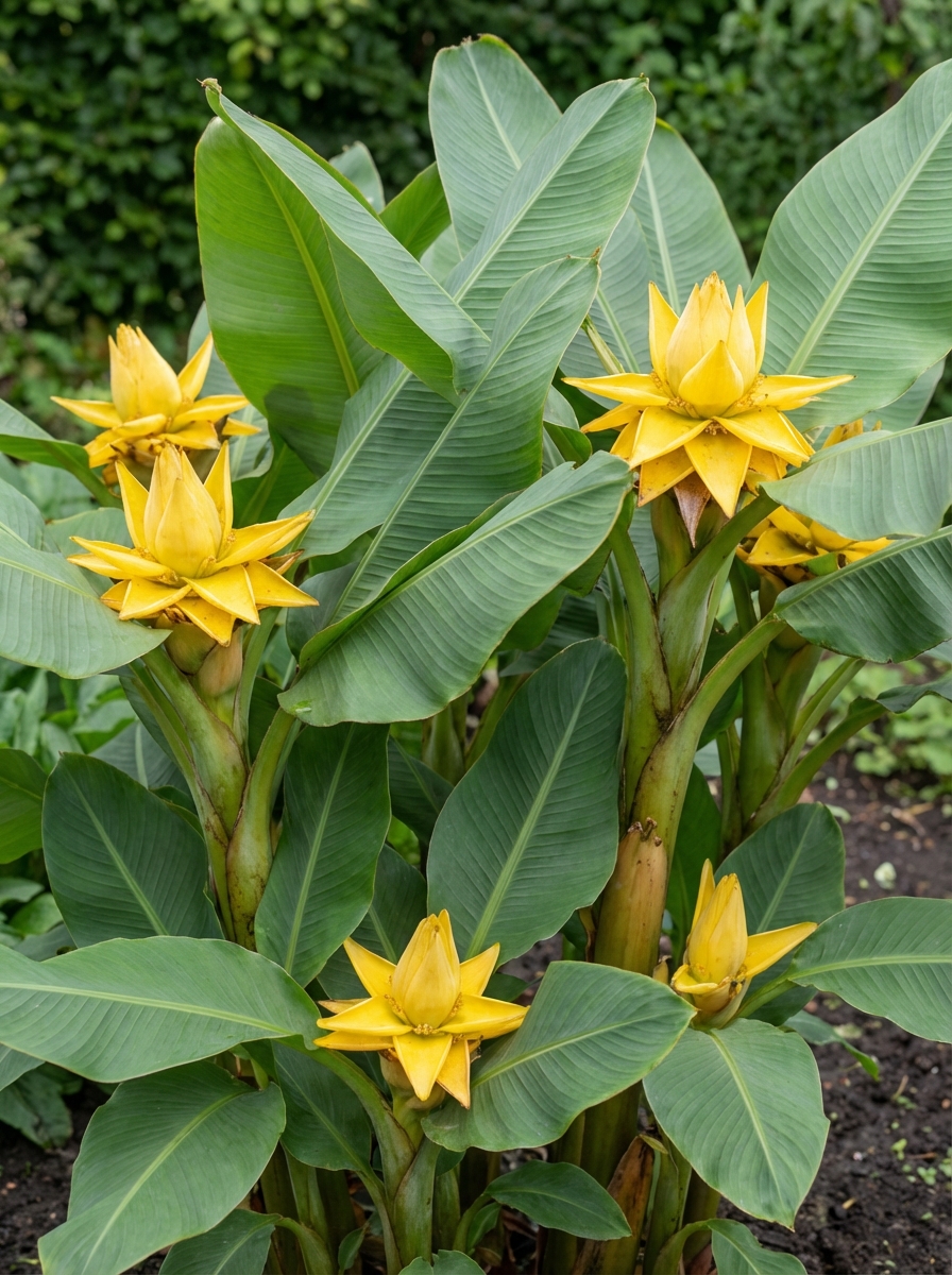 Musella lasiocarpa ist eine niedrig wachsende Zierbanane und benötigt während der Wachstums- und Blütezeit (April bis August) viel Nährstoffe und Wasser.Die Blüte ist eine große, duftende gelbe Blüte, die lange blüht.