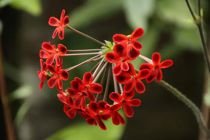 Die wunderschönen, scharlachroten Blüten stehen auf langen Stängeln und die Blätter sind weich und gelappt.