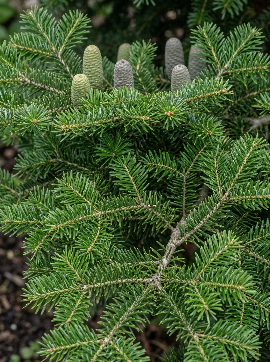 Abies grandis stammt aus dem Nordwesten Amerikas. Bildet eine schmale, pyramidenförmige bis säulenförmige Krone mit dunkelgrünen Nadeln.Trägt Hüten.Es ist ein schnell wachsender Baum und gedeiht besonders gut in lehmigem oder sandigem Boden.