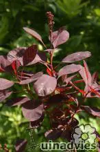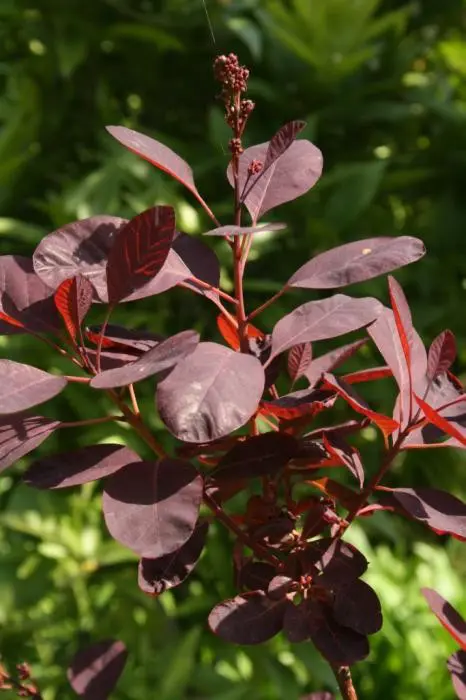 'Follis Purpureis' grüne bis violette Blätter, purpurrote Blütenrispen,