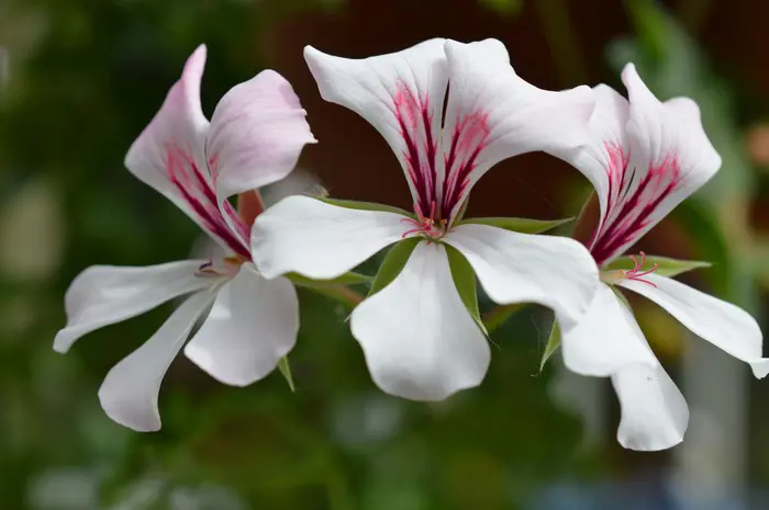 Die Blüten sind weiß mit tiefroten Streifen.