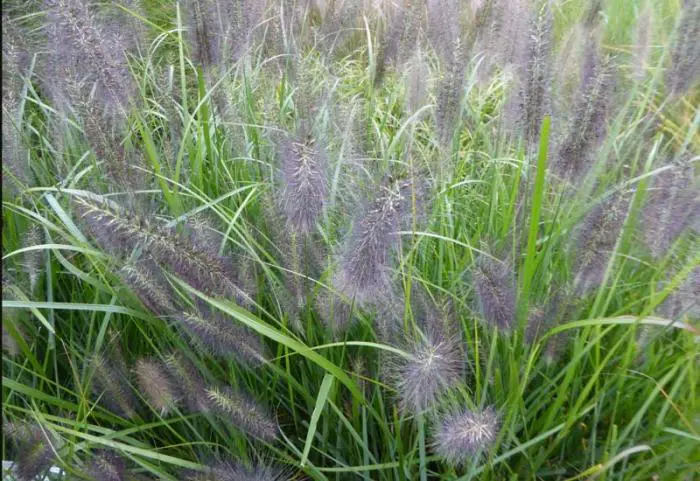 Pennisetum alopecuroides 'National Arboretum' hat breite, überhängende Blätter.