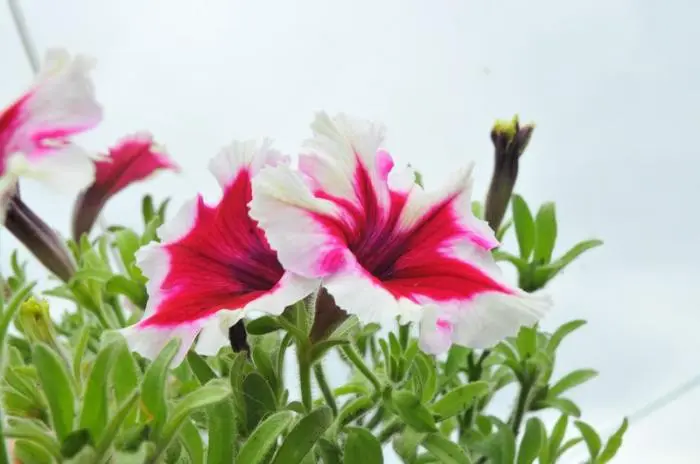 Es gibt viele Arten der Petunien, die besseren sind die Petunia multiflora, da sie wetterbeständiger sind.