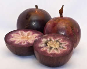 Cainitos (auch Sternapfel genannt) sind Beerenfrüchte, die oval und etwa 10 cm groß werden und tropische sowie sehr schnell wachsende Bäume in Mittelamerika bilden. Ihre glatte und glänzende Außenschale hat eine dunkelblaue bis violette Farbe.