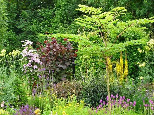 Aralia elata ist ein kleiner Baum/Strauch, dessen Stamm Stacheln hat und sich etwas verdreht, daher der Name Teufelsspazierstock; besonders im Winter ist die Ähnlichkeit groß, wenn die Blätter abgefallen sind und nur noch die Stämme übrig sind.