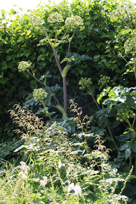 Blüht mit einer Wolke cremig-weißer, feiner Blütenrispen, die über das Laub hinausragen.