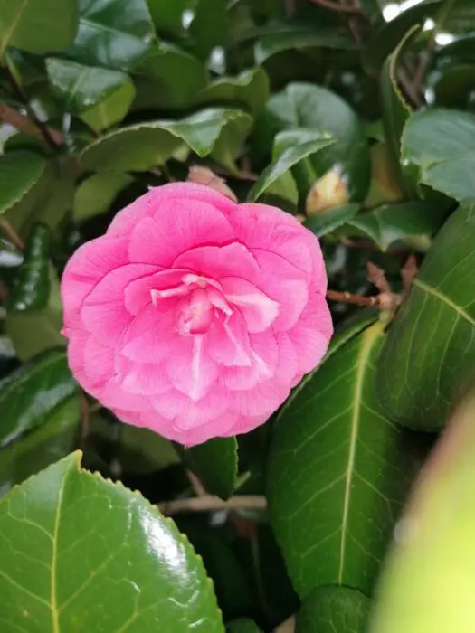 Ein immergrüner Strauch mit glänzenden, lederartigen Blättern.