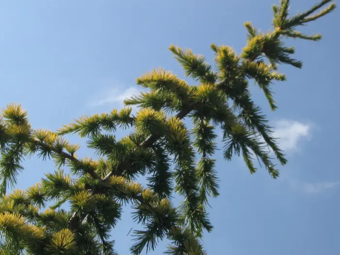 Cedrus deodara 'Aurea' ist ein sehr dekoratives Nadelholz mit gelb-grünen Nadeln.