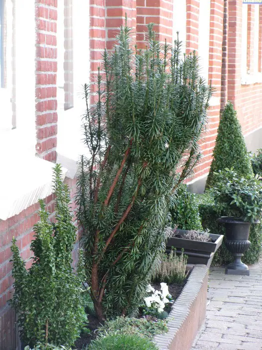Cephalotaxus harringtonia 'Fastigiata' ist ein langsam wachsendes, säulenförmiges Nadelholz mit langen Nadeln.