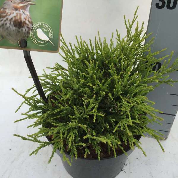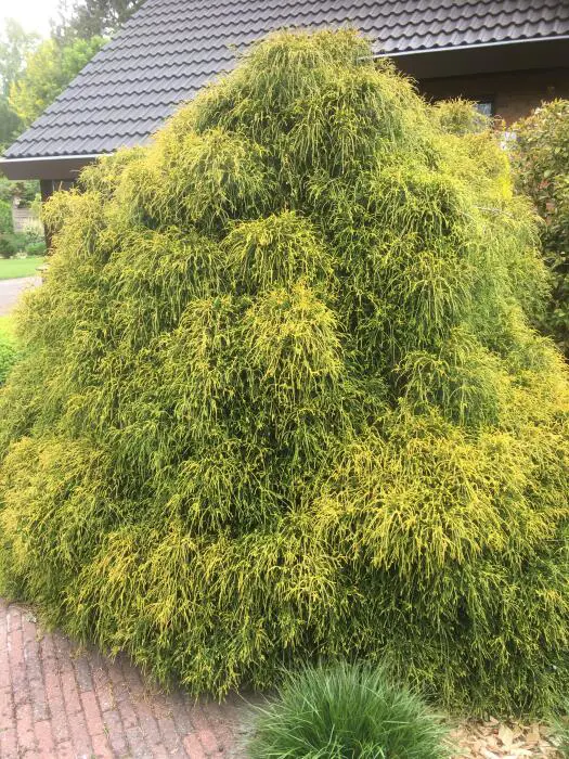 Chamaecyparis pisifera 'Sungold' ist eine 250 cm große Zwergzypresse mit breiter Rundform.