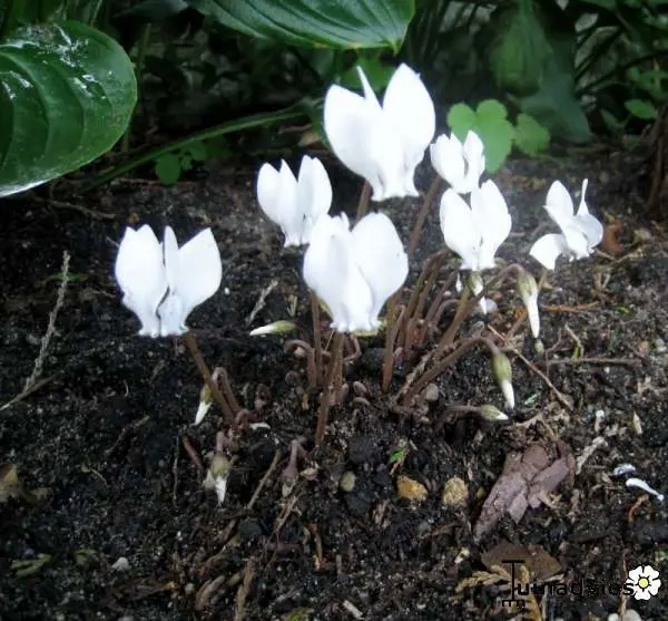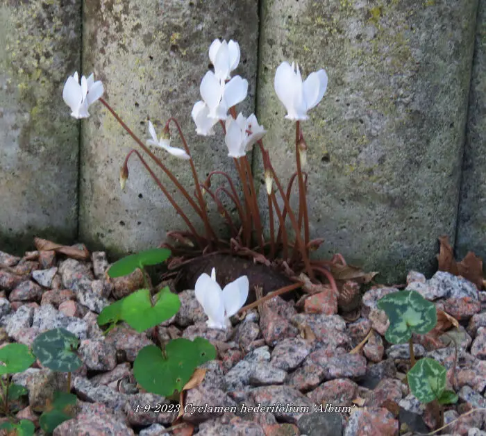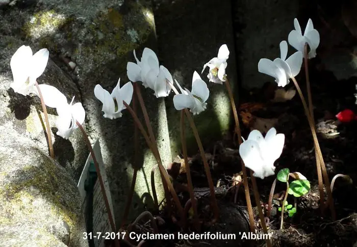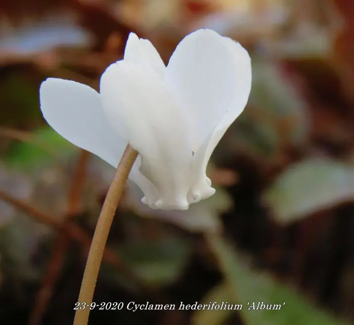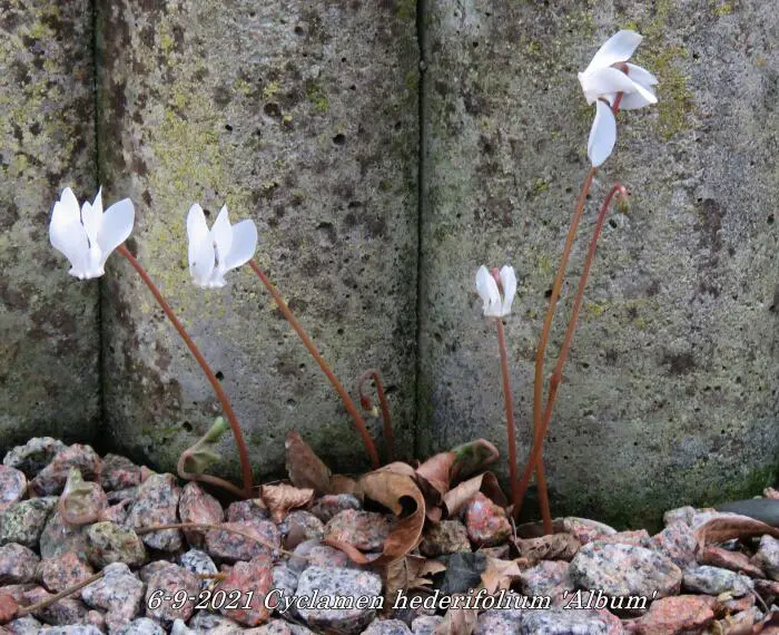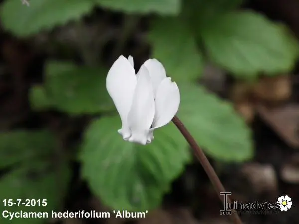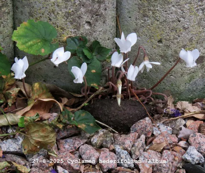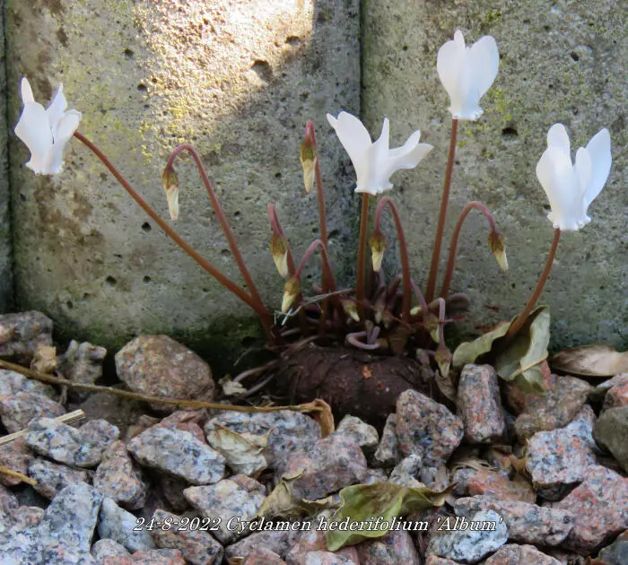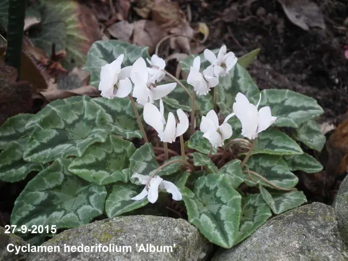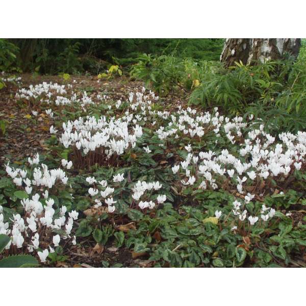 Cyclamen hederifolium 'Album' ist ein starkes und robustes Cyclamen, das in Südeuropa heimisch ist.