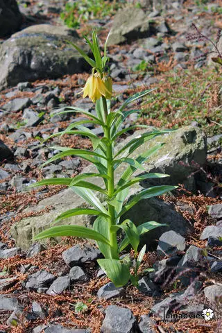 Fritillaria imperialis 'Vivaldi' ist eine Zwergsorte mit rötlich-rosa Blüten.