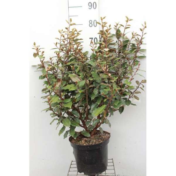 Elaeagnus x ebbingei 'Compacta' ist ein kompakt wachsender, buschiger Strauch mit kleinen, welligen silbergrauen Blättern.