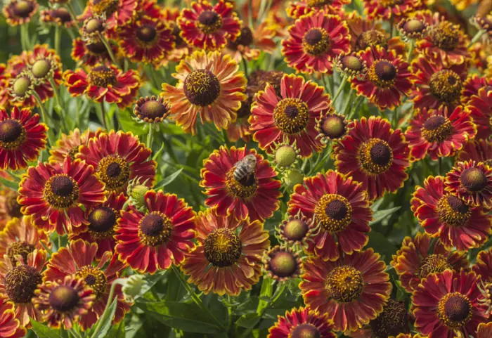 Helenium autumnale MARIACHI ist eine Serie kompakter Pflanzen mit gut verzweigten und robusten Stängeln. Sie sind außerdem widerstandsfähiger gegen Mehltau.