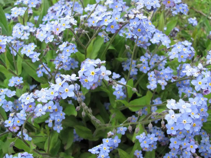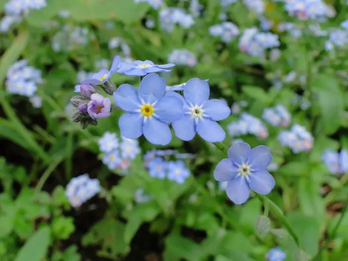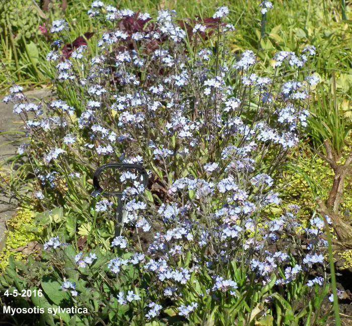 Myosotis sylvatica ist ein Einjähriger mit leuchtend lavendelblauen Blüten im Frühling.
