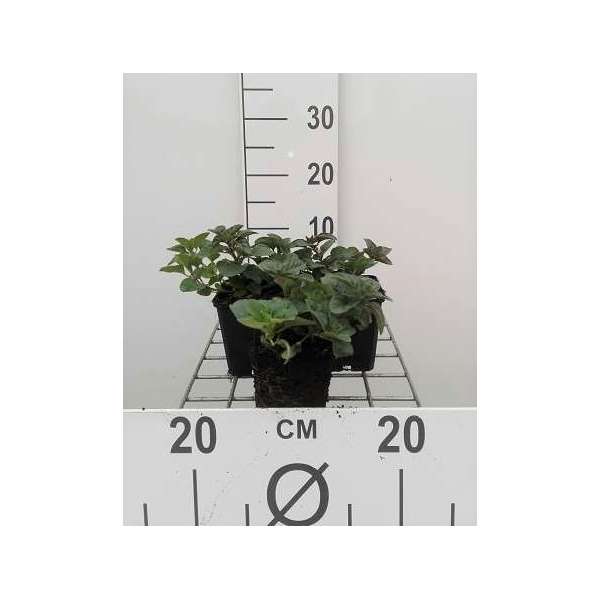 Blüht mit kompakten Kreisen dunkelroter Blütenknospen, die flieder-rosa blühen.
