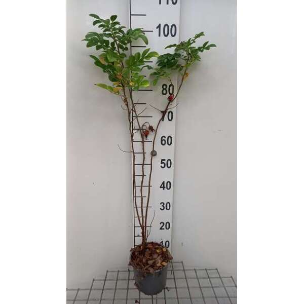 Ideal für eine Hecke: Sie sind dichte, dornige Sträucher mit duftenden einzelnen oder doppelten Blüten, die den ganzen Sommer bis Ende August blühen, und danach bekommt man die glänzenden roten Hüften, die eher wie kleine Äpfel aussehen.