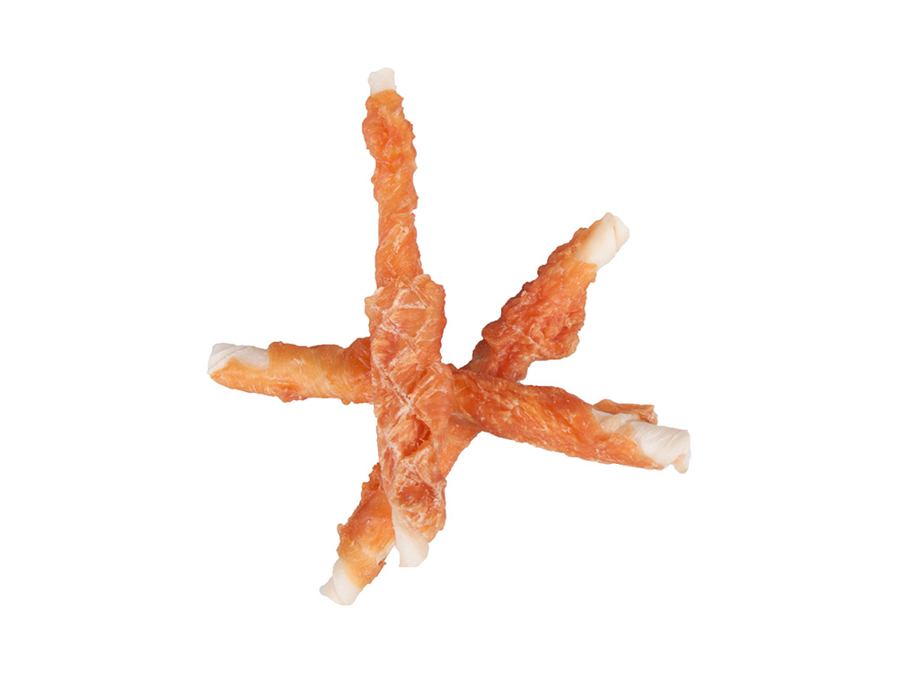 Diese Hundestäbchen aus Rinderhaut und Huhn sind tolle Snacks für Ihren Hund. Sie sind eine angenehme Ablenkung und fördern auch die Zahnhygiene.