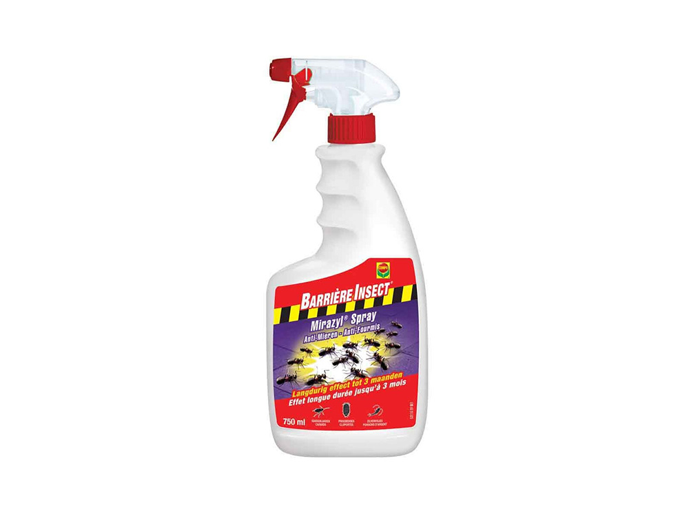 Das Barriereinsekt Mirazyl bekämpft Ameisen radikal im und um das Haus, zum Beispiel auf Terrassen und Balkonen. Kontrolliert kriechende Insekten wie Kakerlaken, Silberfisch und Waldläuse drinnen.