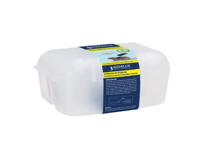 Eine Rattenköderbox mit einer stabilen Falle im Inneren, die man leicht von außen spannen kann, um Ratten sicher und hygienisch zu kontrollieren. Das hat den Vorteil, dass Kinder, aber auch Katzen, Hunde und andere Haustiere nicht unbeabsichtigt mit der Falle in Kontakt kommen können. Die transparente Köderbox ermöglicht es, den Fang leicht zu kontrollieren.
