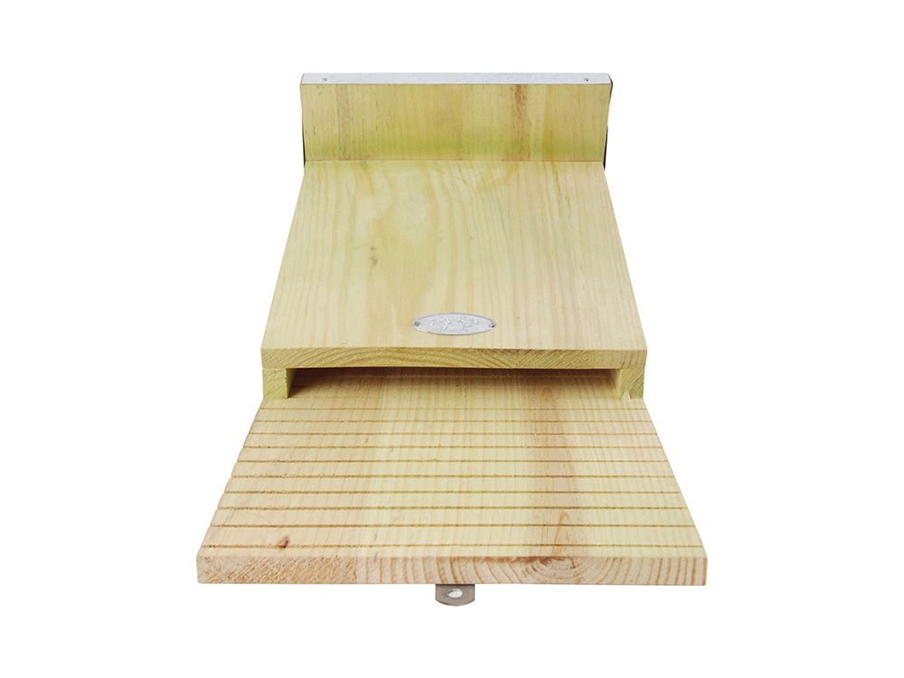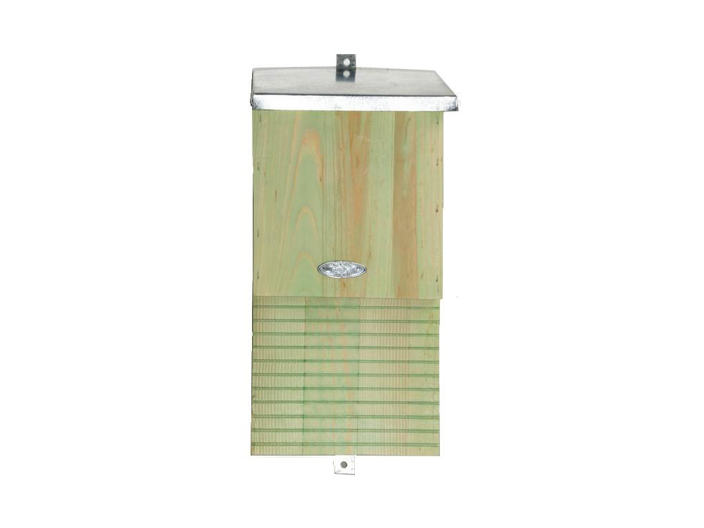 Das Holz wurde behandelt und das Dach mit Zink versehen , wodurch der Nistkasten gegen viele Wettereinflüsse resistent ist. Durch die speziellen Kerben im Holz haben die fliegenden Säugetiere einen besseren Griff und gelangen leichter in die Nistkiste.