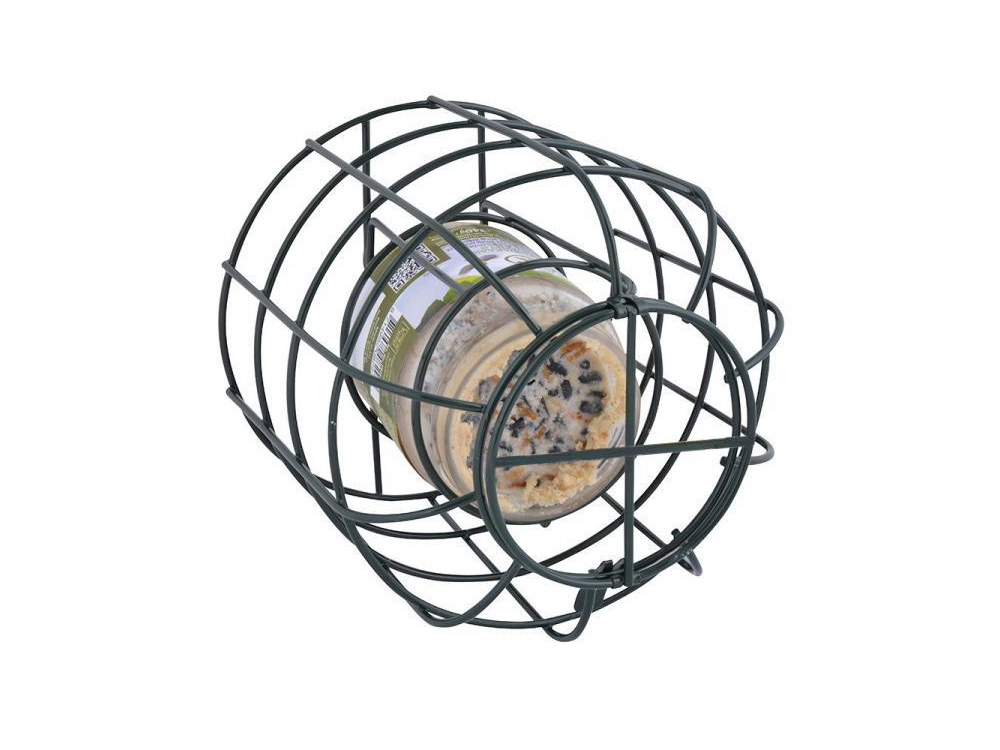 Dank des Käfigs, der das Erdnussbutterglas umgibt, können nur die kleineren Vögel durch die Netze zum Futter gelangen. So können Sie die Vögel viel länger genießen, wie sie zu ihrem geliebten Erdnussbutterglas auf und ab fliegen, wo sie ruhig essen können. Dank des Käfigs müssen sie sich keine Sorgen mehr um Greifvögel machen, die über uns hinwegfliegen, oder Katzen , die lauern. Du kannst das Erdnussbutterglas ganz einfach selbst über die Vorderseite ersetzen, die als Luke geöffnet werden kann.