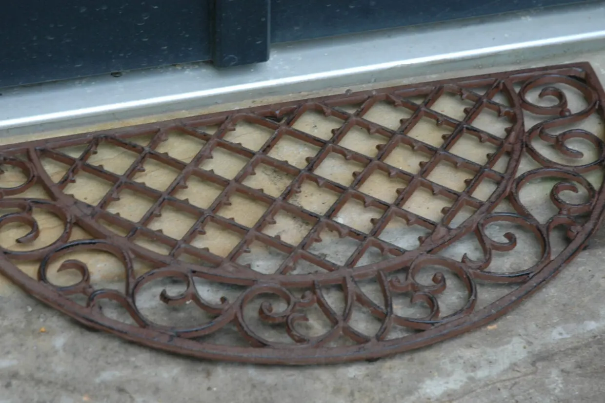 Eine klassische viktorianische Fußmatte von Esschert Design , gefertigt aus Gusseisen mit eleganten Locken, die jedem Eingang ein ländliches Aussehen verleihen.
