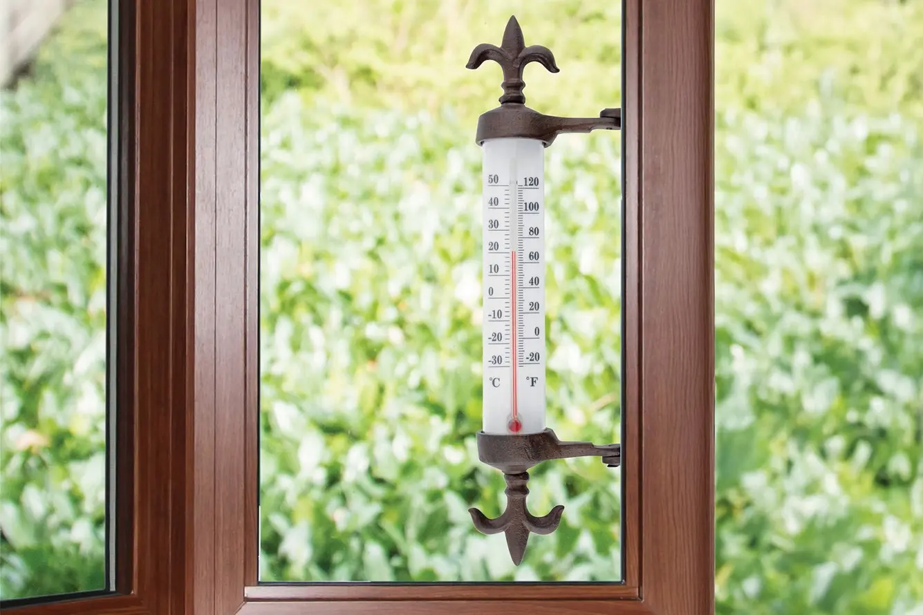 Wie praktisch ist das? Mit diesem Rahmenthermometer von Esschert Design können Sie ganz einfach die Außentemperatur von Ihrem Zuhause aus messen. Befestigen Sie das Thermometer am Rahmen und drehen Sie es in jede gewünschte Position.