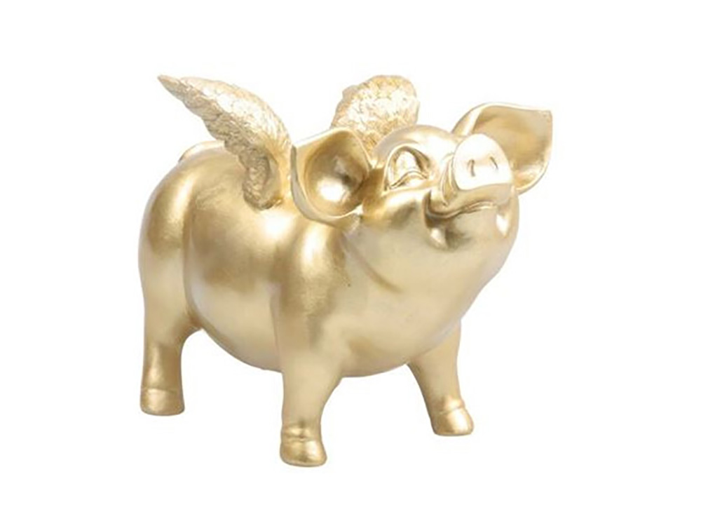 Dieses geflügelte Sparschwein ist ein auffälliges Erscheinungsbild und zieht sofort die Aufmerksamkeit auf sich. Das Schwein trägt eine glänzende Jacke und erhellt das Innere komplett.