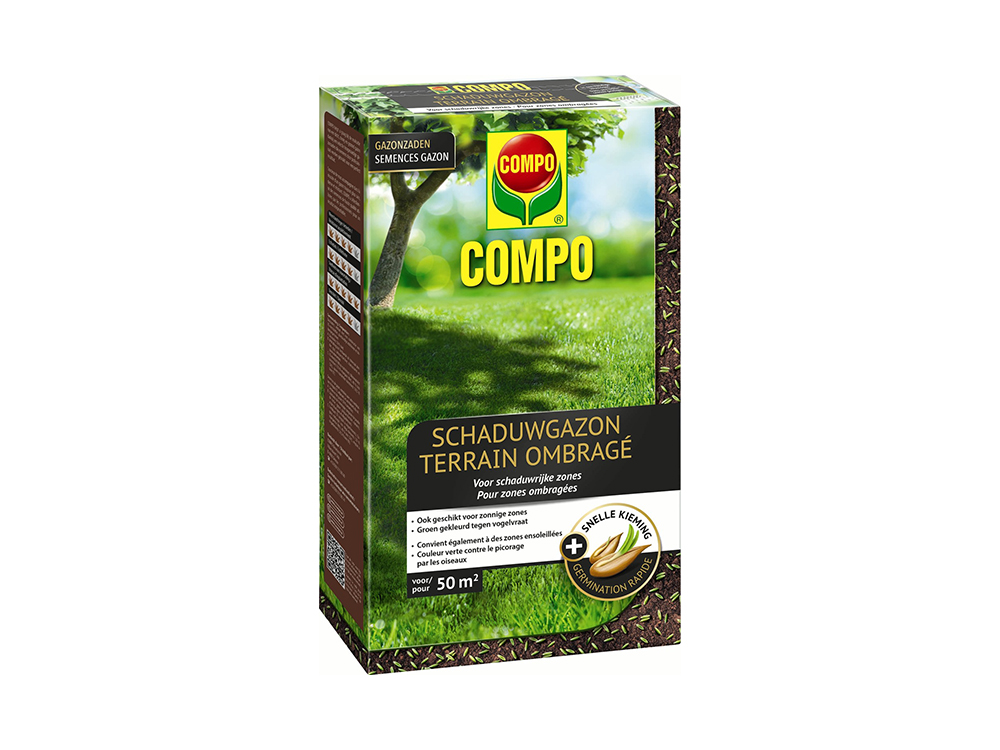 Mit der Rasensamenmischung Shade Lawn bietet Compo Ihnen die ideale Lösung für einen schönen Rasen, selbst in Bereichen, die nicht so wachstumsgünstig sind. Unter Bäumen (die den Boden austrocknen) und im Schatten des Hauses (was für feuchte Erde sorgt) gewinnt der Rasen mehr Widerstand. Das grüne Gehäuse macht die Rasensamen für Vögel nicht attraktiv. So können Sie sicher sein, dass das Ergebnis homogen ist!