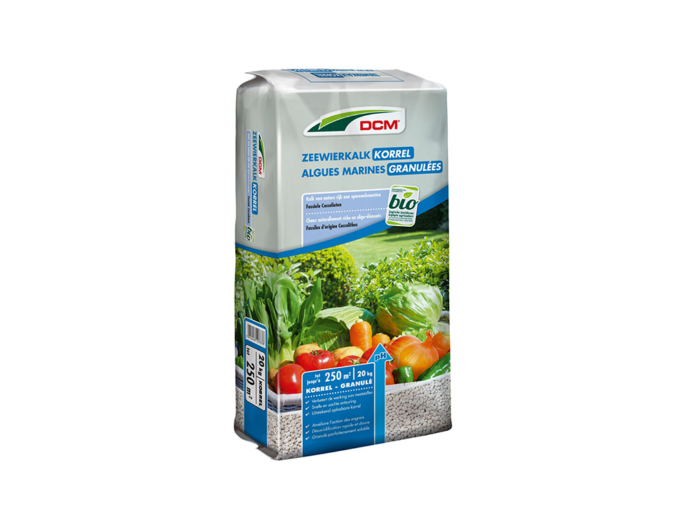 Algenkalk ist reich an Kalzium und Spurenelementen, wirkt sanft und ist sehr löslich. Ideal, um den Gemüse- und Obstgarten, den Ziergarten und den Teich zu verkalken.