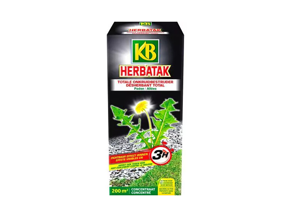 KB Herbatak ist ein Unkrautvernichter ohne Glyphosat, ein flüssiges Konzentrat mit einer der höchstkonzentrierten Formeln auf dem Markt, sodass man bis zu 5-mal mehr Quadratmeter damit behandeln kann.