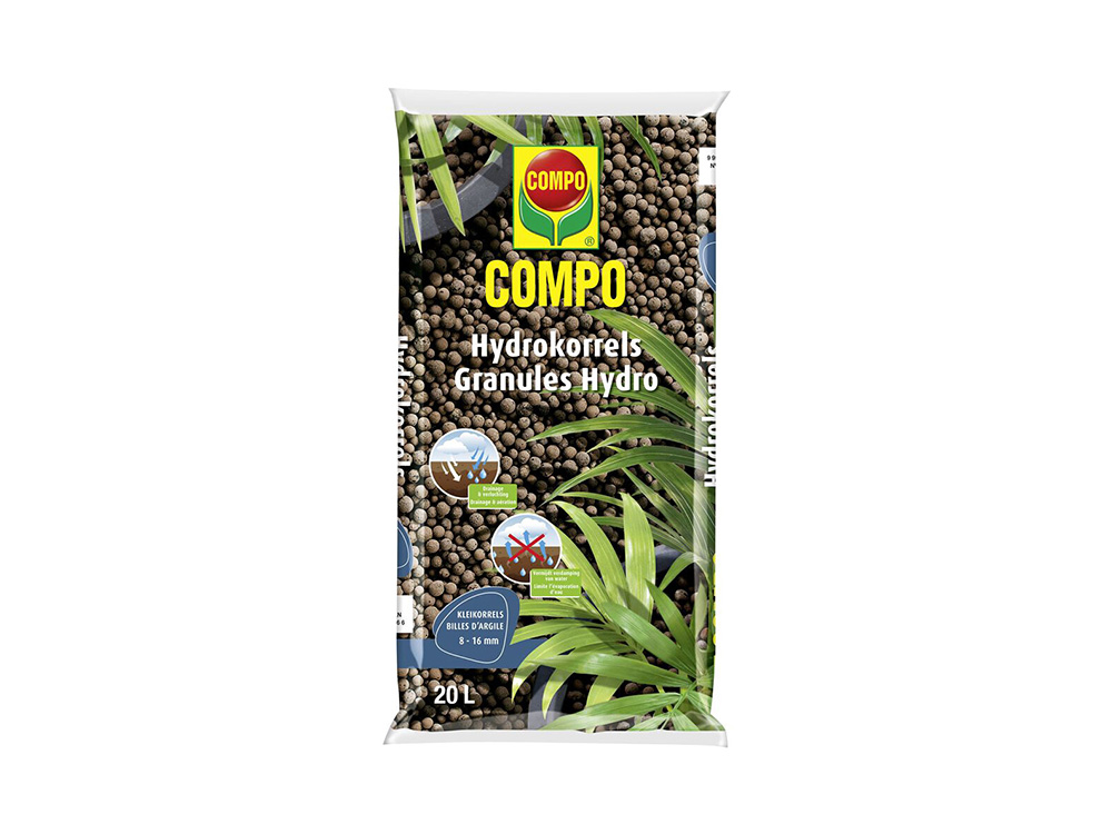 Die Compo Hydro-Körner sind staubfreie und unzerbrechliche Körner aus reinem Ton und daher völlig sicher für Pflanzen. Sie eignen sich für alle Formen der Hydroponik, als dekoratives Überdeckmaterial oder als Drainageschicht am Boden von Pflanzenschalen und Blumentöpfen.