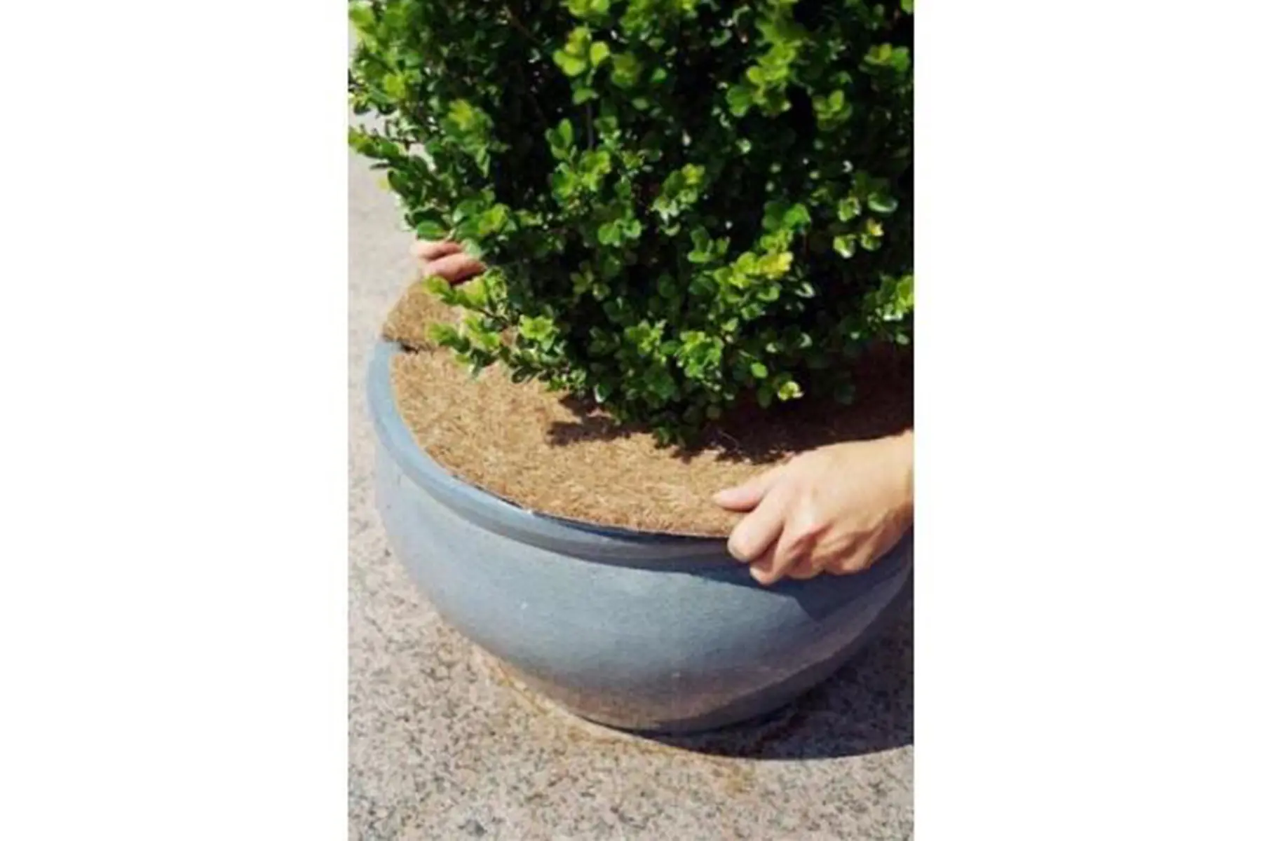 Der Kokosring ist bis zur Mitte eingeritzt und hat eine Öffnung von ca. 3 cm mit Kerben drumherum. Dank dieser Schnitte können Sie den Kokosring an die Dicke des Stammes Ihres Olivenbaums, Buchsbaums oder einer anderen Pflanze anpassen. Bei Pflanzen mit einem Stamm größer als 3 cm kann man die Öffnung leicht auf die gewünschte Größe kürzen. Bei Töpfen mit kleinerem Durchmesser kann man den Kokosnussschutz schnell und einfach auf die gewünschte Größe trimmen. So bleiben deine Pflanzen das ganze Jahr über sauber ohne Unkraut. Außerdem verhindert der Kokosring teilweise die Verdunstung des Wassers, sodass der Boden langsamer austrocknet und weniger Bewässerungen nötig sind.