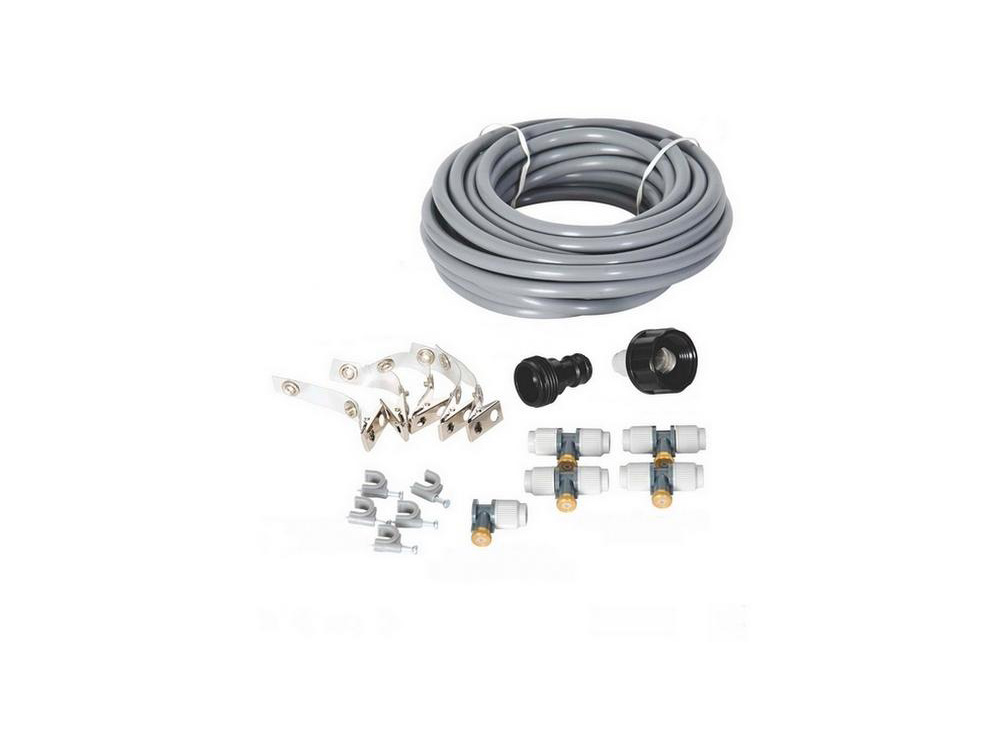 Suchen Sie auch nach einer Abkühlung an einem heißen Sommertag? Dieses System ist definitiv die Lösung für Sie! Hängen Sie das Besprühsystem einfach an Ihren Sonnenschirm, Pavillon oder an Ihre Terrassenwand und genießen Sie einen angenehmen, erfrischenden Wassernebel über Ihrem Liegestuhl!