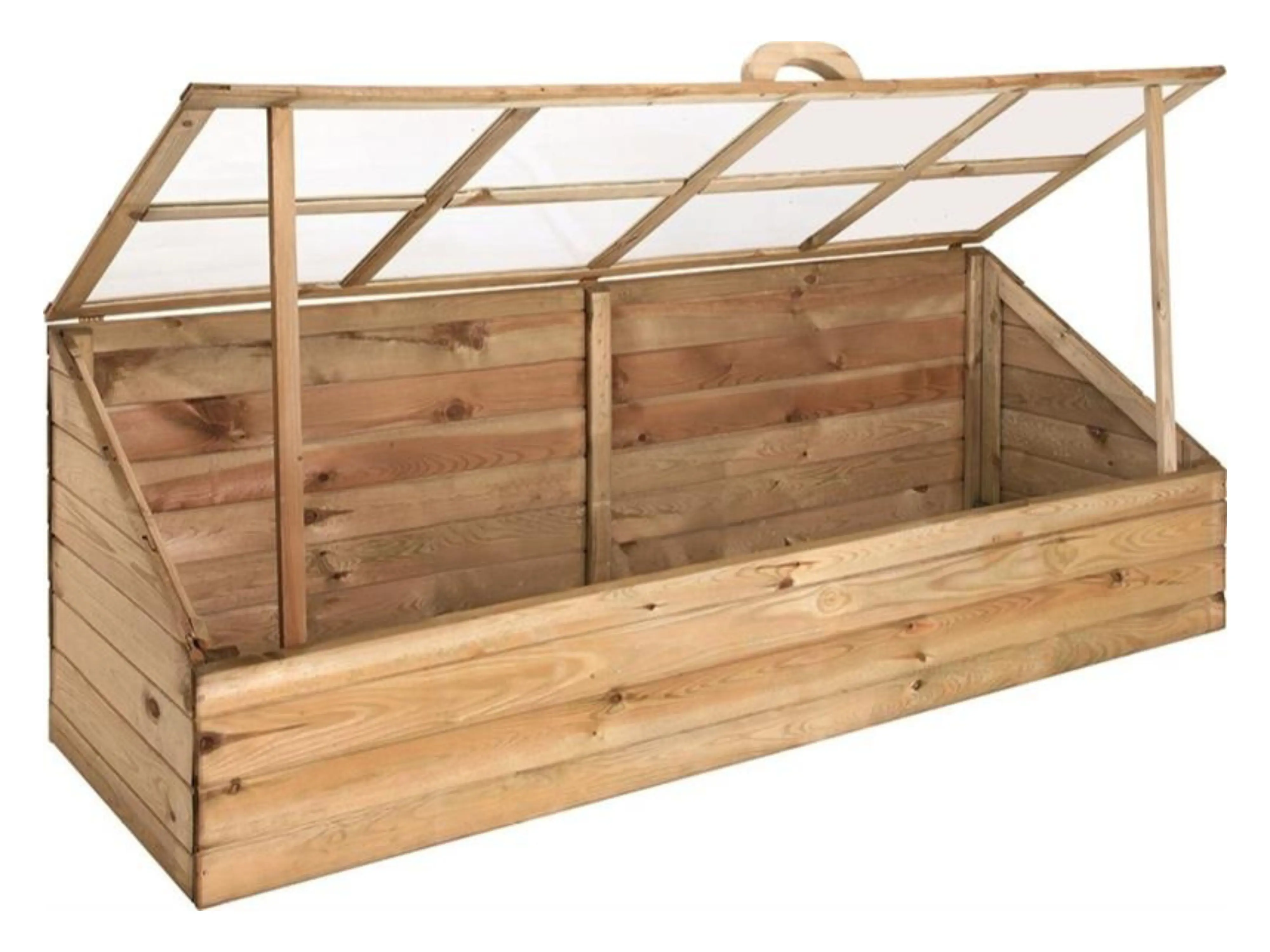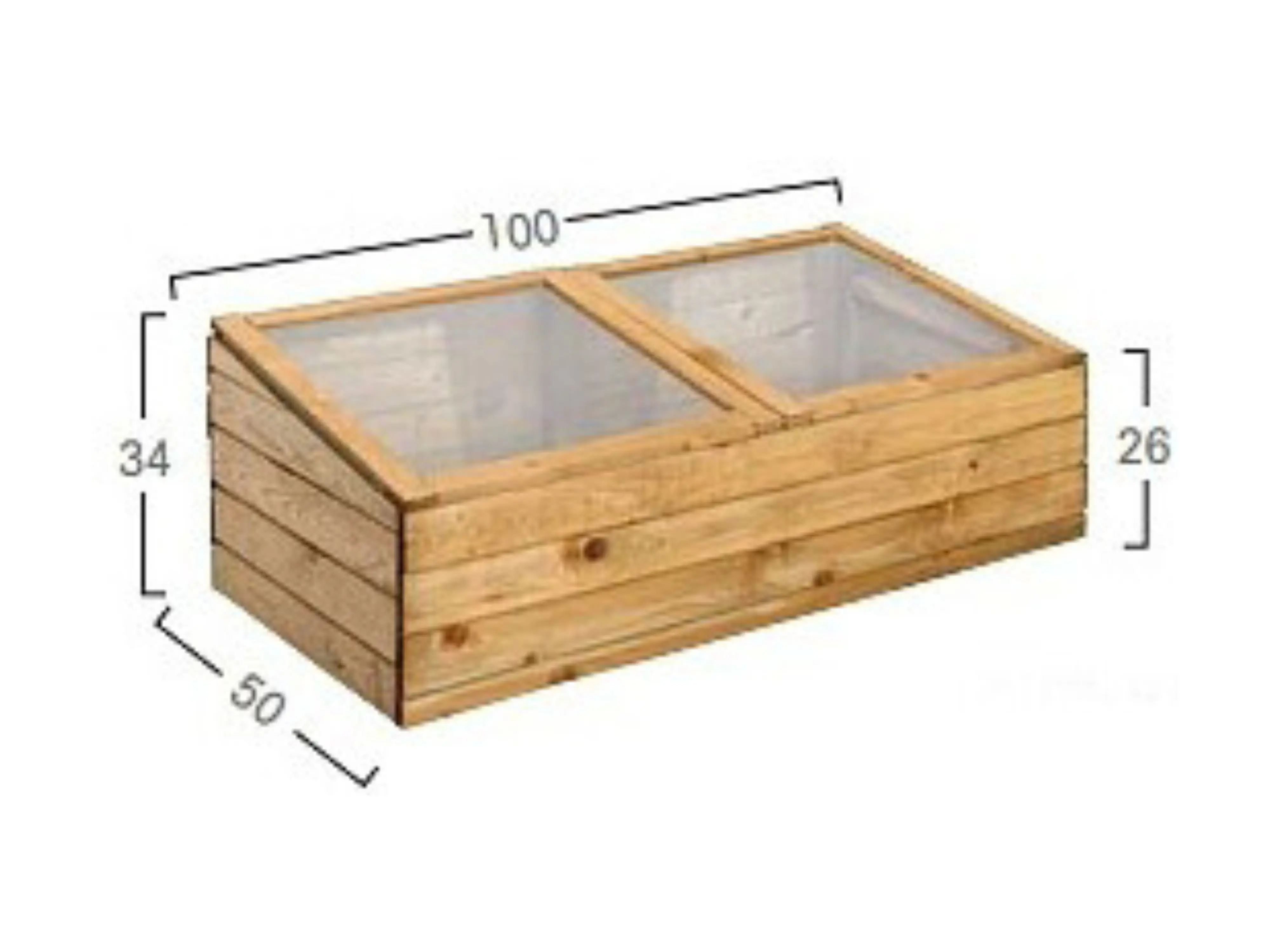 Diese langlebige Kiste besteht aus imprägniertem Kiefernholz, Sie können sie nach Belieben lackieren oder streichen. Der Deckel der Box besteht aus zwei separaten Klappläden aus Plexyglas.