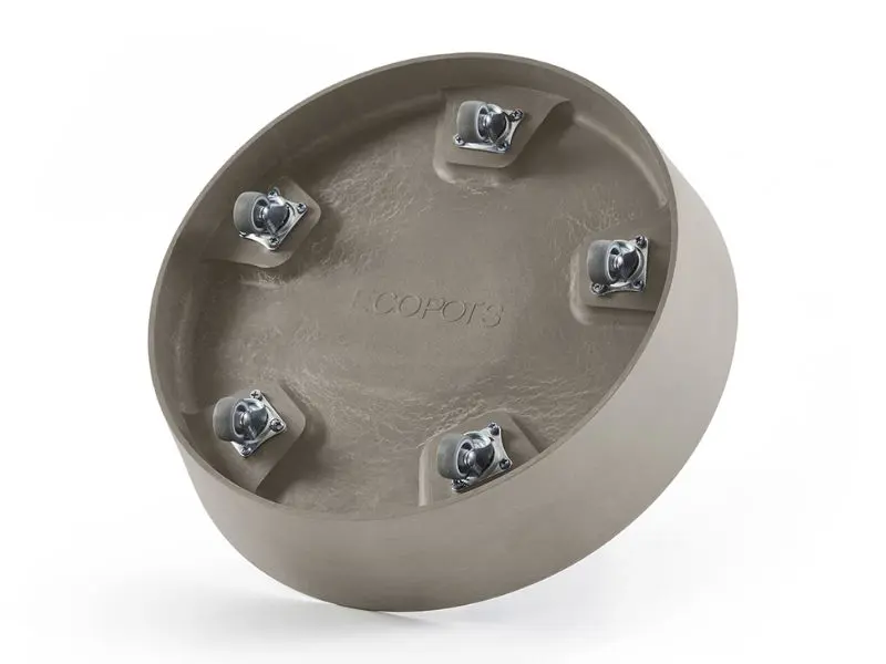 Machen Sie Ihr Ecopots Amsterdam 40 mobil in Kombination mit dieser langlebigen Bodenschale, die nahtlos aus recyceltem Kunststoff gefertigt ist. Die Schüssel ist mit fünf Rädern am Boden ausgestattet, sodass man sie problemlos überallhin bewegen kann, ohne die Räder zu sehen.