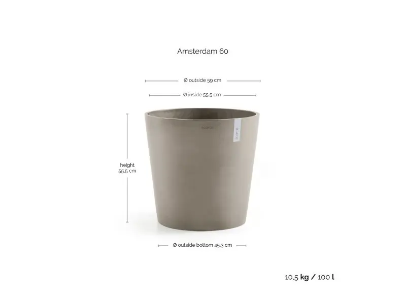 Ecopots steht für die perfekte Balance zwischen Design, Innovation und Nachhaltigkeit. Beim Amsterdam wählen Sie einen funktionalen und umweltfreundlichen Blumentopf mit hochwertigem Finish und zeitlosem Aussehen.