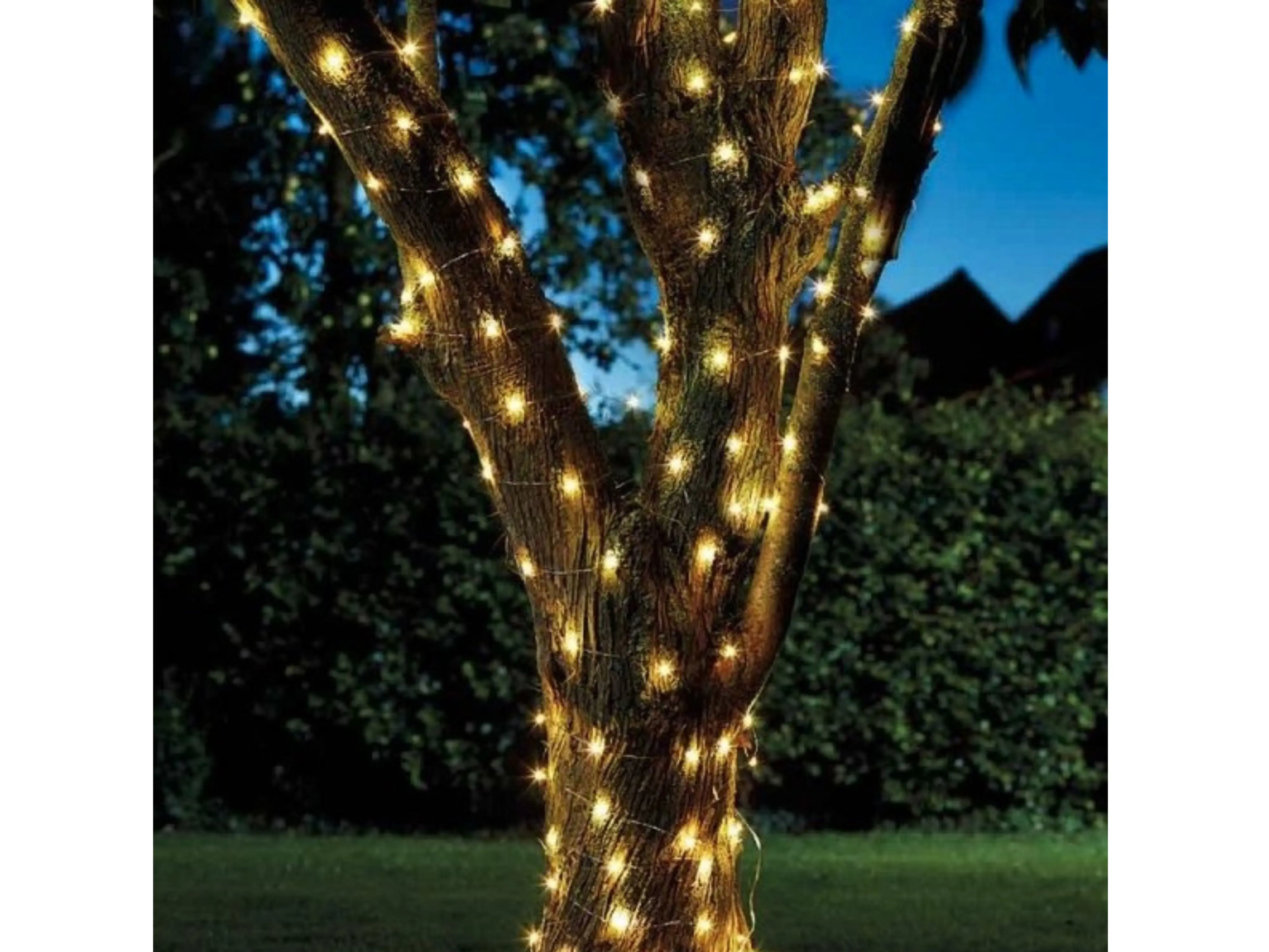 Ein sehr feines Licht, das die perfekte Stimmungsbeleuchtung bietet. Die elegante Girlande ist mit 100 LED-Lichtern ausgestattet, die warmes Licht spenden. Wenn sie brennen, sieht es so aus, als würden 100 Glühwürmchen in deinem Garten herumfliegen.