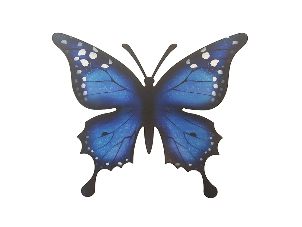 Verwandeln Sie Ihren Garten mit dieser farbenfrohen Dekoration in ein Schmetterlingsparadies . Der Schmetterling flattert durch deinen Garten und landet an der Wand, wo er seine Flügel in der Sonne wärmt.